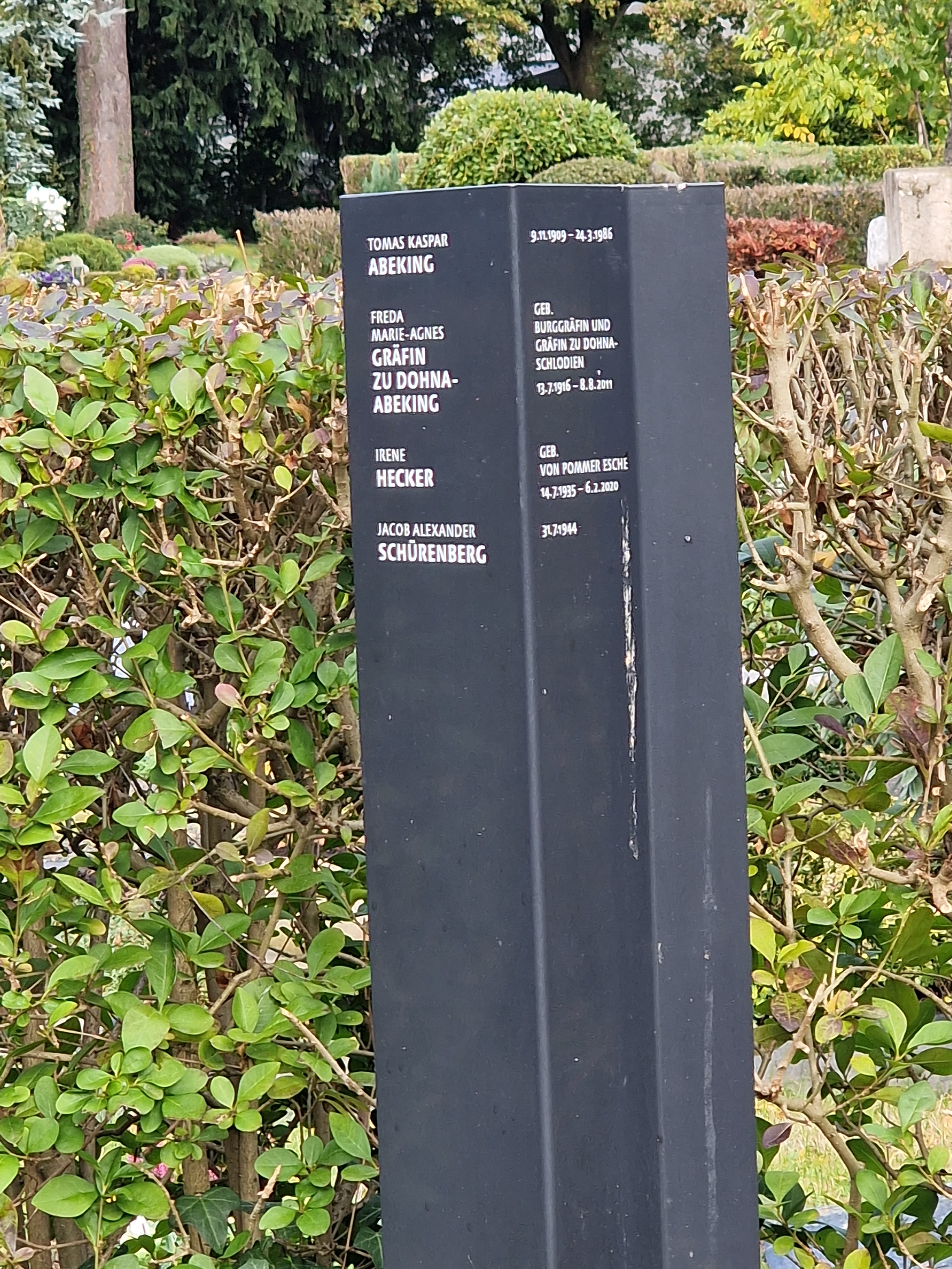 | Freda | 1916-2011 | Dohna-Schlodien, spouse (1) Walter (1907) Schürenberg (2) Tomas | |||